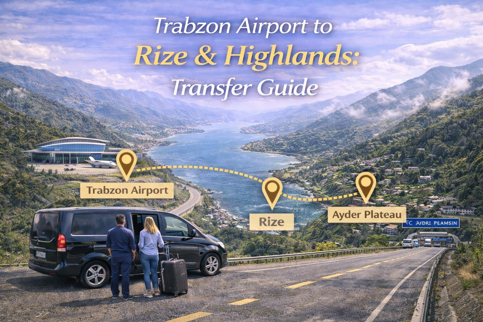 Трансфер из аэропорта Трабзона в Ризе и горные районы Большинство путешественников, прилетающих в Аэропорт Трабзон (TZX) , продолжают путь в Ризе и знаменитые высокогорные районы Восточного Причерноморья. Аэропорт Трабзон → Ризе (центр города) Расстояние между Трабзоном и Ризе с...